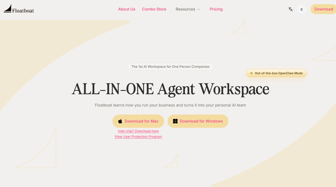 而 Floatboat 是先锚定了 OPC 这个核心群体——他们是最特殊的用户,既是自己领域的专家,又要身兼数职,同时做法务、财务、运营、创作、投放,工作流极其复杂,对效率提升的需求最为强烈。在此基础上,产品实现了三层用户的兼顾: