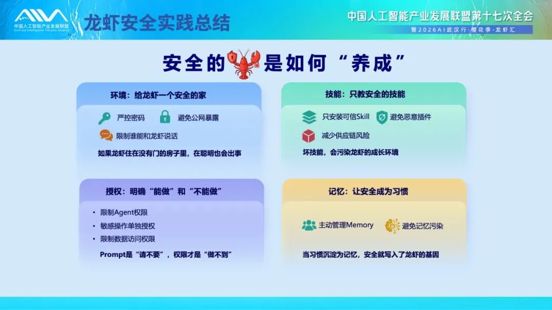 - 环境——严控密码、杜绝公网暴露,给龙虾一个有门有锁的安全的家;