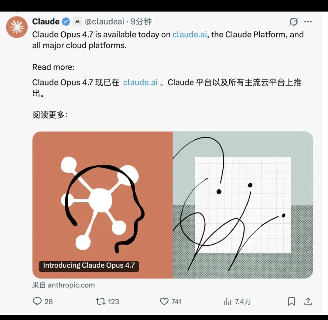 4月17日深夜,Anthropic正式推出Claude Opus 4.7。