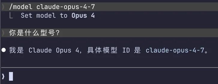 Claude Code 输入 /model claude-opus-4-7 后可生效