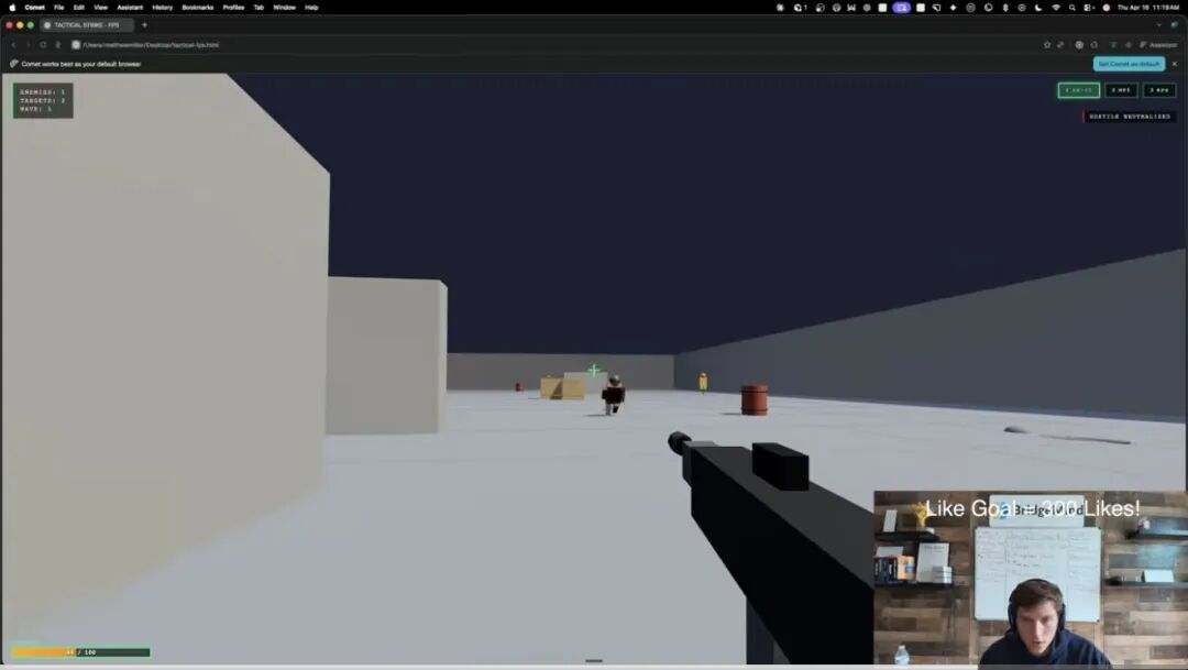 而在开发者Bridgemind的直播中,他用“Vibe Coding”模式,仅通过描述就让AI一气呵成,在单个HTML文件中构建出一个包含多种武器的第一人称射击游戏(FPS)。