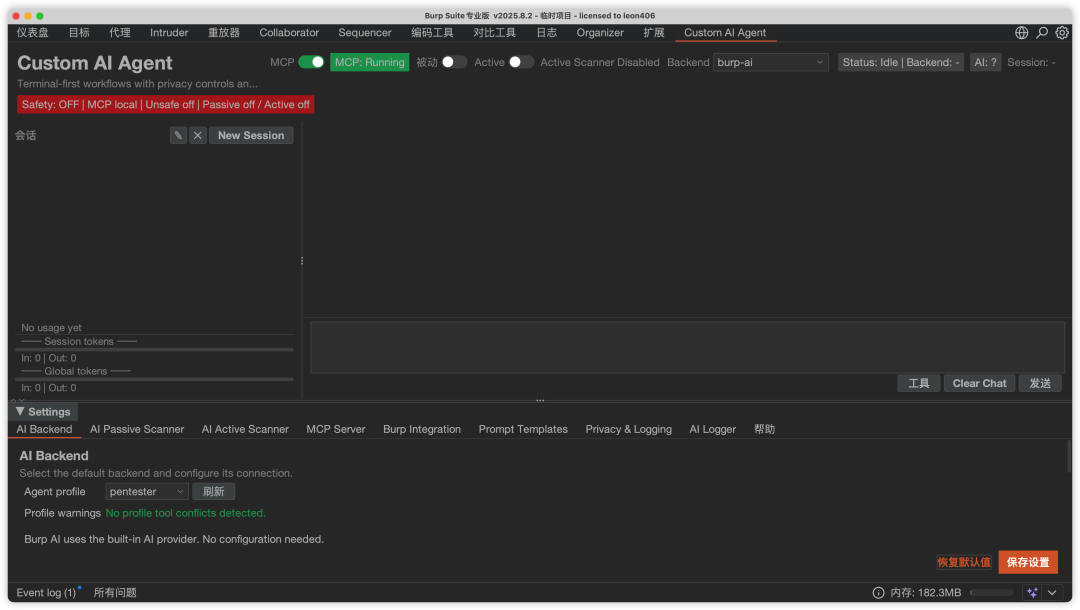 - 3. 加载完成后,Burp 顶部会出现 AI Agent 专属标签