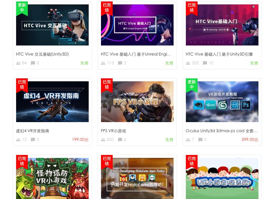 - 泰课在线(http://www.taikr.com/) 国内著名的VR 及unity 学习平台,个人觉得他的VR 资源还是挺多的。