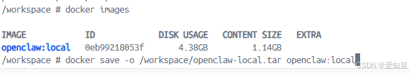 docker images docker save -o /workspace/openclaw-local.tar openclaw:local