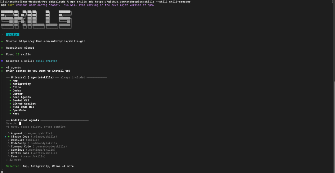 我们一般可以通过npx skills 这个工具安装 Skills (项目目录https://github.com/vercel-labs/skills),安装命令:;