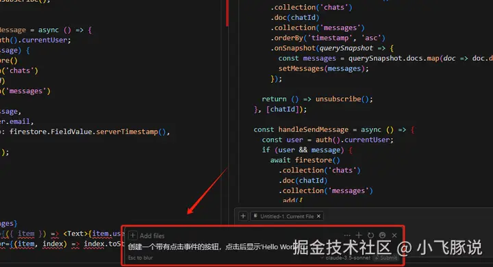 查看生成代码:Cursor AI会根据你的描述生成对应的代码片段,并在代码编辑区中显示。你可以直接使用这些代码,或根据需要进行修改。