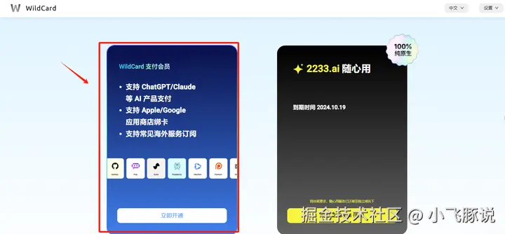 注册登录后选择左侧wildcard支付会员卡片。