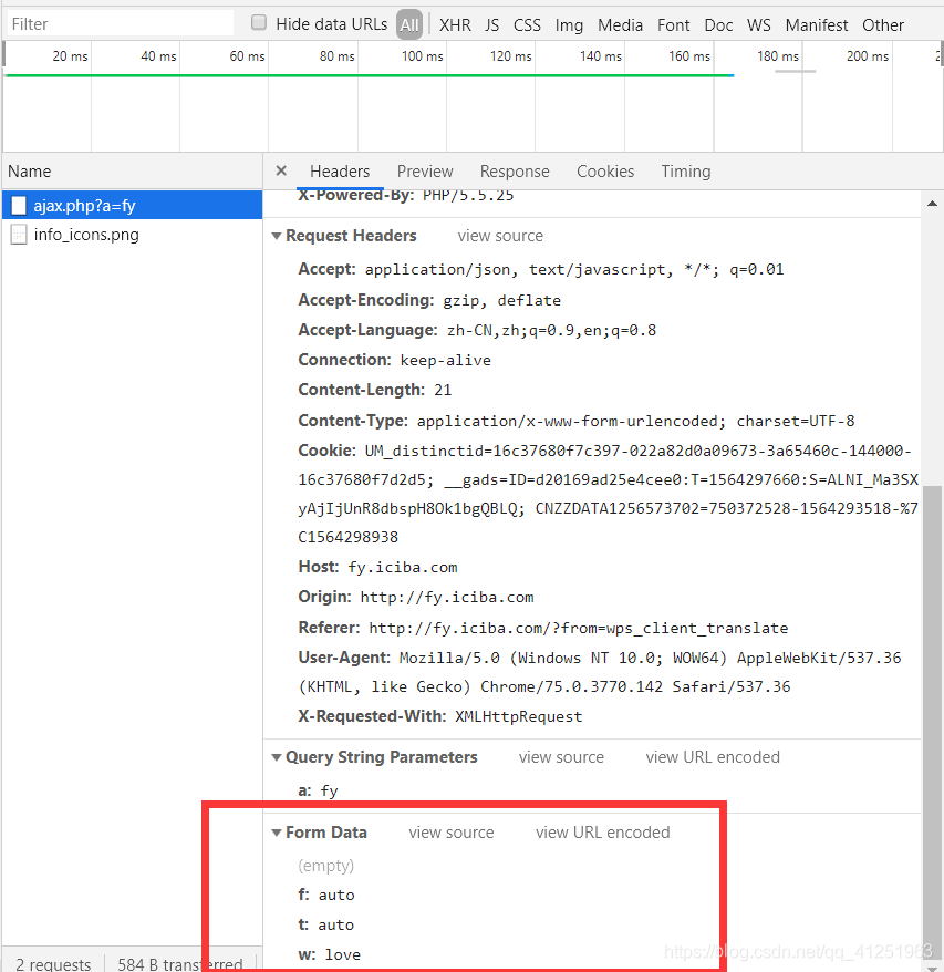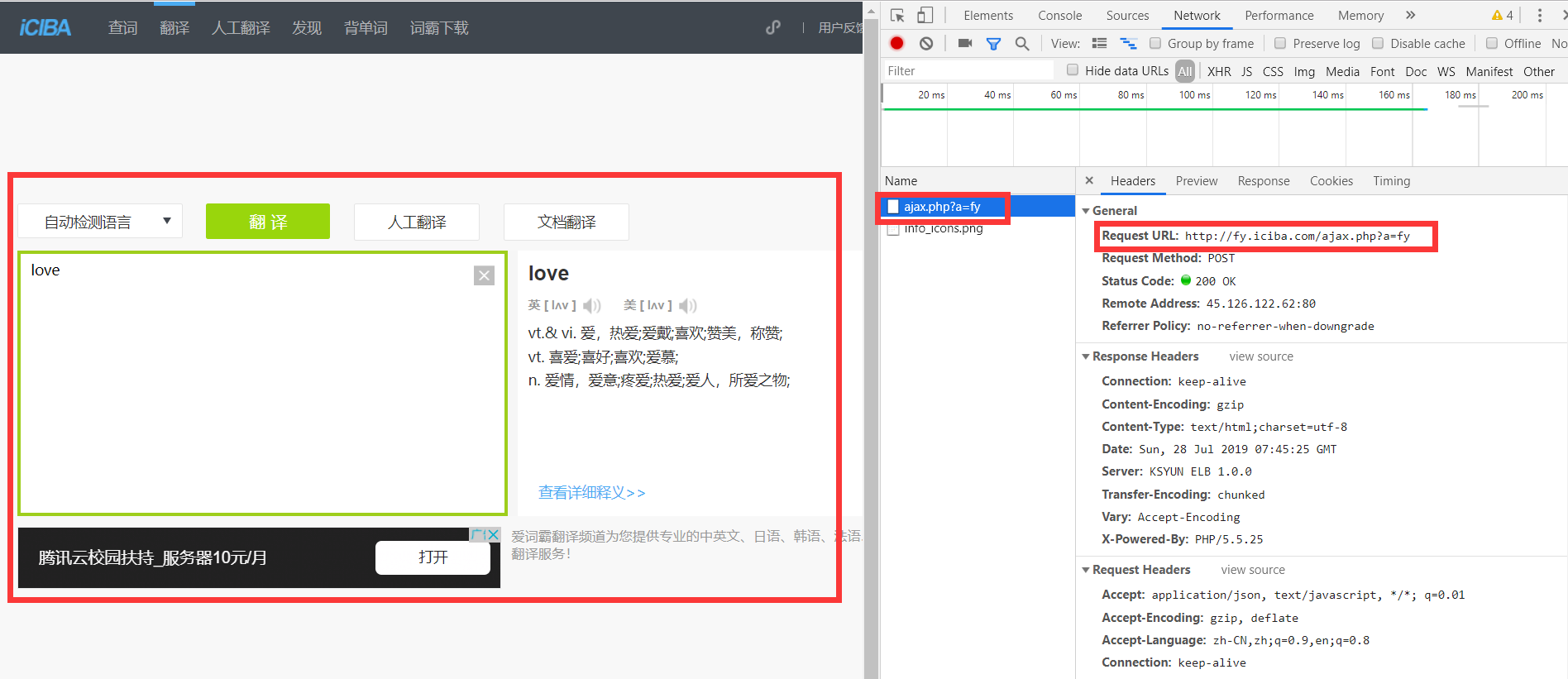 在左侧输入单词的时候,在开发者工具里面抓取了一下信息,发现原理非常简单。
