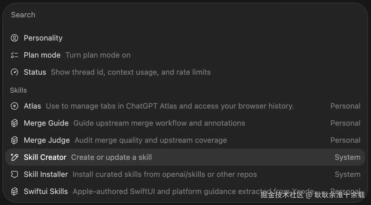 但 Codex 的 Skills 更像是: