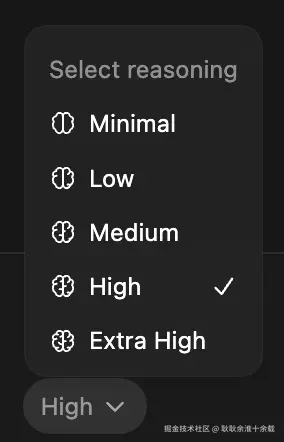 GPT-5.3-Codex 有多个推理档位。