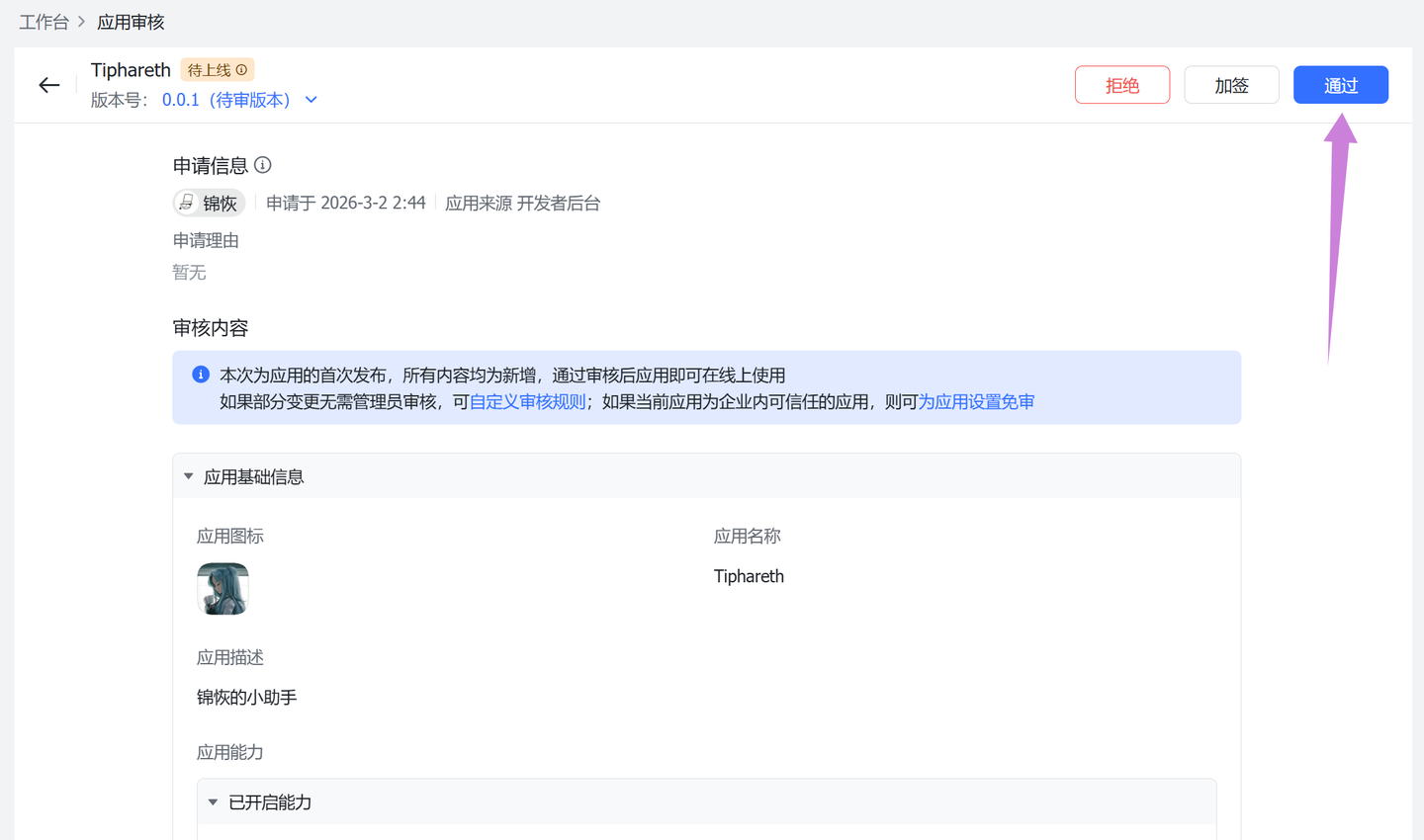 一路滚到最下面点击保存,然后点击申请审批,然后让组织的管理员审批一下,下面是管理员视角: