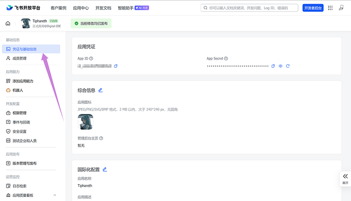 ok,完成后,我们回到开发者平台,点击【凭证与基础信息】