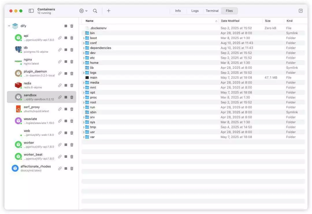Dify 配有一个沙盒环境,本质上跟 Manus 之类 Agent 操作的那个“电脑”是一个东西。