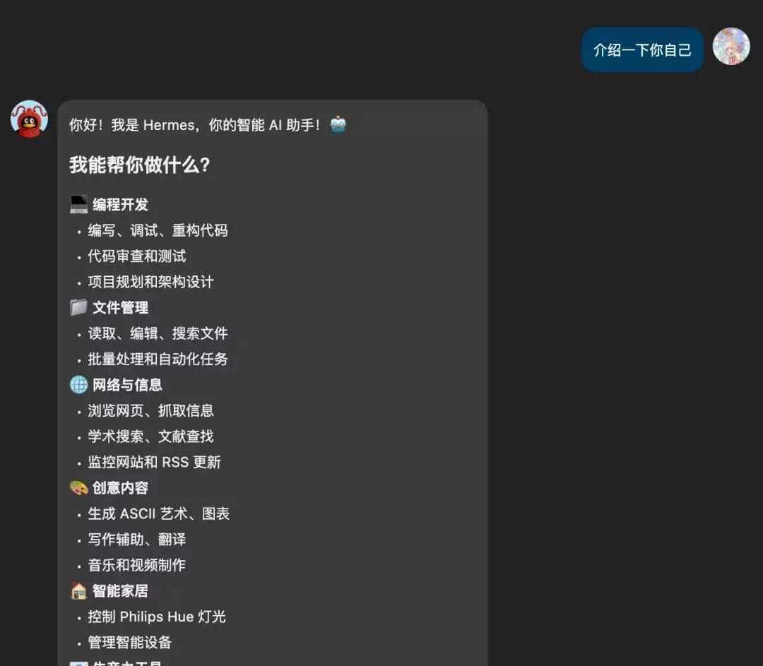 Hermes Agent 是由 Nous Research 开发的一款开源自主 AI 智能体,专为持久运行和自我成长设计,于 2026 年 2 月开源,具备自我进化、跨会话记忆能力,从任务中自动积累经验,支持全平台通信,网友们戏称为“爱马仕”。