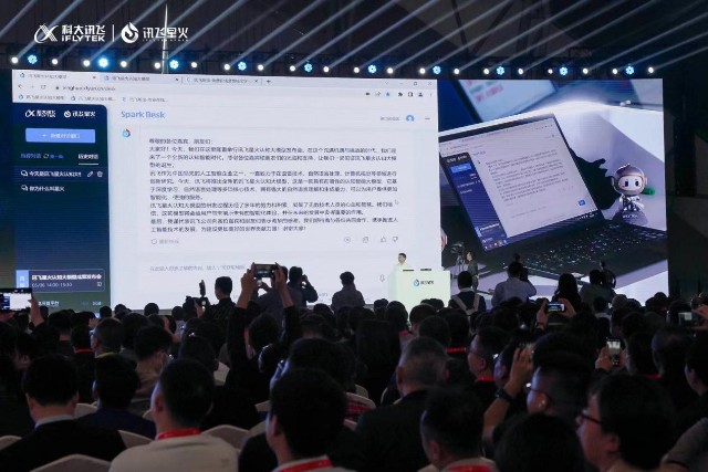 发布会现场,语音输入,实时互动,无论是文本生成、语言理解,还是知识问答、逻辑推理,亦或是数学能力等,星火大模型都表现出色。现场真机实测的互动提问,大模型的精彩回答,引发掌声不断。