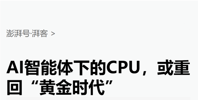 这让市场开始相信,CPU、AI推理、AI Agent(智能体)的技术取得重大突破,开始成为新增长引擎。