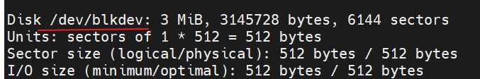 前面只是设置了块设备的大小为3MB,但实际上并没有分配这块内存,因为到下一步读写块设备才会需要操作内存,所以申请一块3MB的内存在当前阶段非必须。