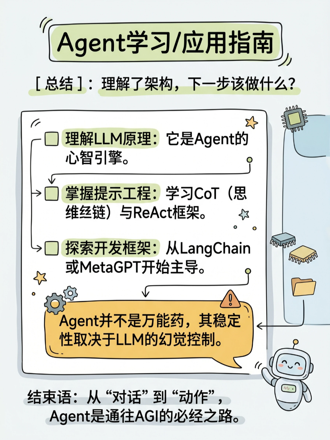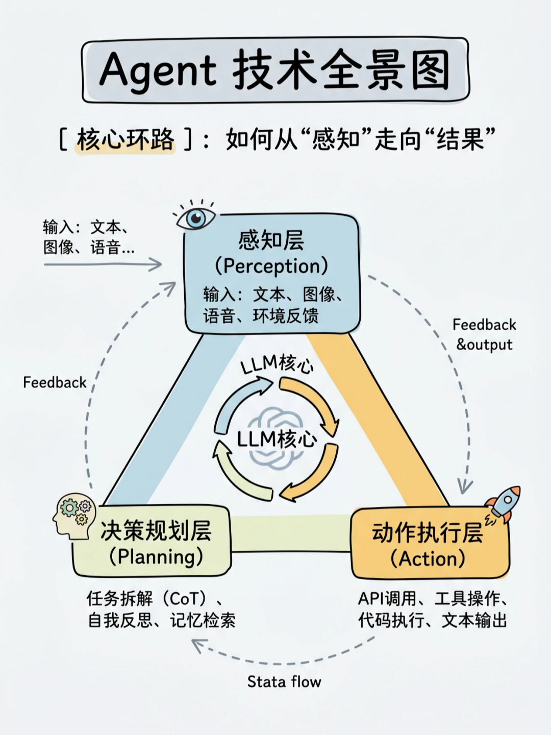 今天这组图,把 AI Agent 的底层逻辑、技术架构、核心技能和学习路径一次性讲透,看完你就懂,为什么说它是通往通用人工智能(AGI)的关键一步。