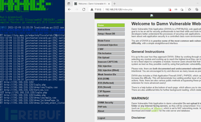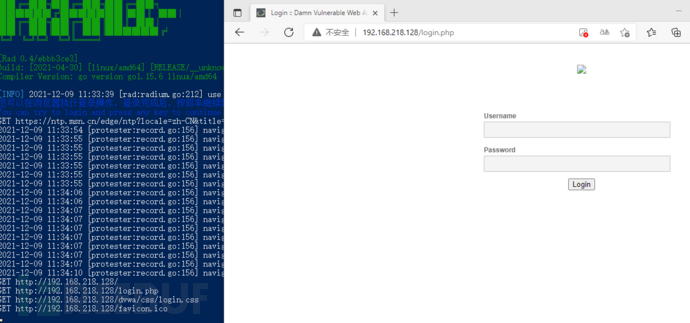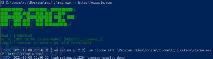 运行rad:rad -t http://example.com -http-proxy 127.0.0.1:7777