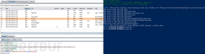 - 使用burp作为上级代理,只需要将bp打开,然后将Rad的http-proxy设置为burp的代理端口即可