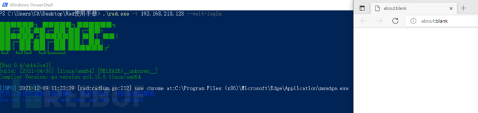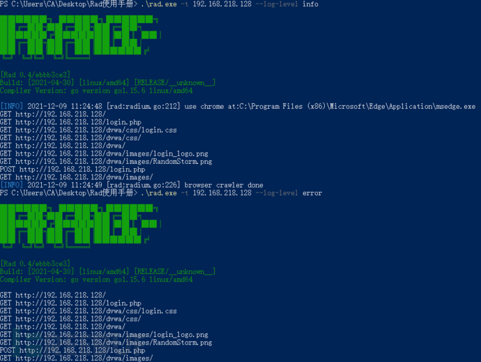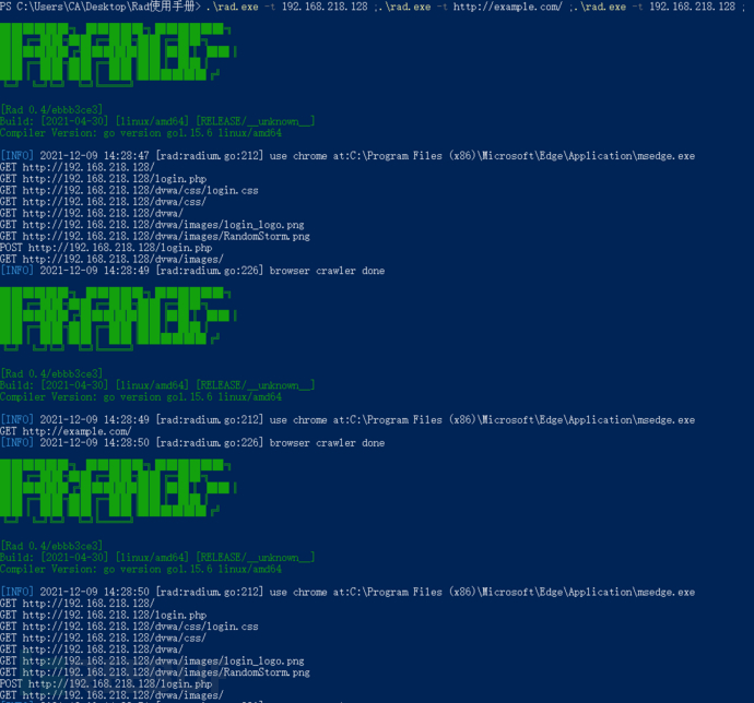 Rad是没有图形化界面的,所以需要通过Powershell,cmd,shell等通过命令行调用。配置文件需要随意制定一个扫描目标后生成。
