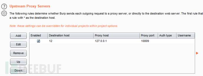 - 如果需要再挂一层代理改变出网ip,只需要在Burp的User options中的Upstream Proxy Servers设置上层代理即可