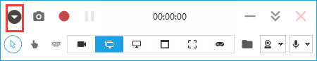 红色框框那个是折叠按钮。红色圆形按钮是【开始录制/结束录制】