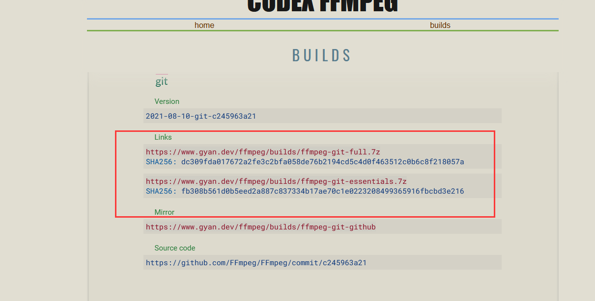 随便选择一个,比如 第一个 连接 【Windows builds from gyan.dev】