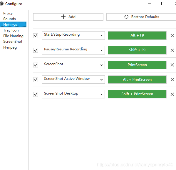 唯一需要注意的是,如果你想录制avi或mp4,需要下载个编码器。默认是没有的,初次安装后,会提示你下载 FFmpeg 。但是我这里下载失败。所以要自己去下载,然后在此软件上配置好编码器路径。