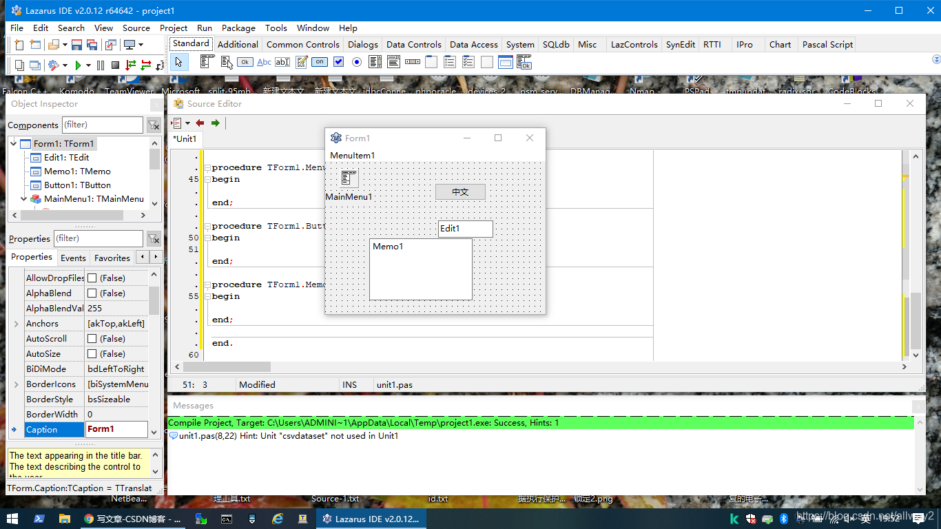 Lazarus 是一个兼容 Delphi 的跨平台 IDE,适用于 Free Pascal。它包括或多或少与 Delphi 的 VCL 兼容的 LCL。Free Pascal 是一个 GPL 编译器,可以在 Linux、Windows、macOS、FreeBSD 和其他平台上运行。Free Pascal 旨在能够理解和编译 Delphi 语法,即 OOP。Lazarus 是缺少的拼图的一部分,它将允许您在上述所有平台上开发类似 Delphi 的程序。与 Java 力求在任何地方一次编写运行不同,Lazarus 和 Free Pascal 力求在任何地方编写一次编译。由于完全相同的编译器可用于上述所有平台,这意味着您无需进行任何重新编码即可为不同平台生成相同的产品。