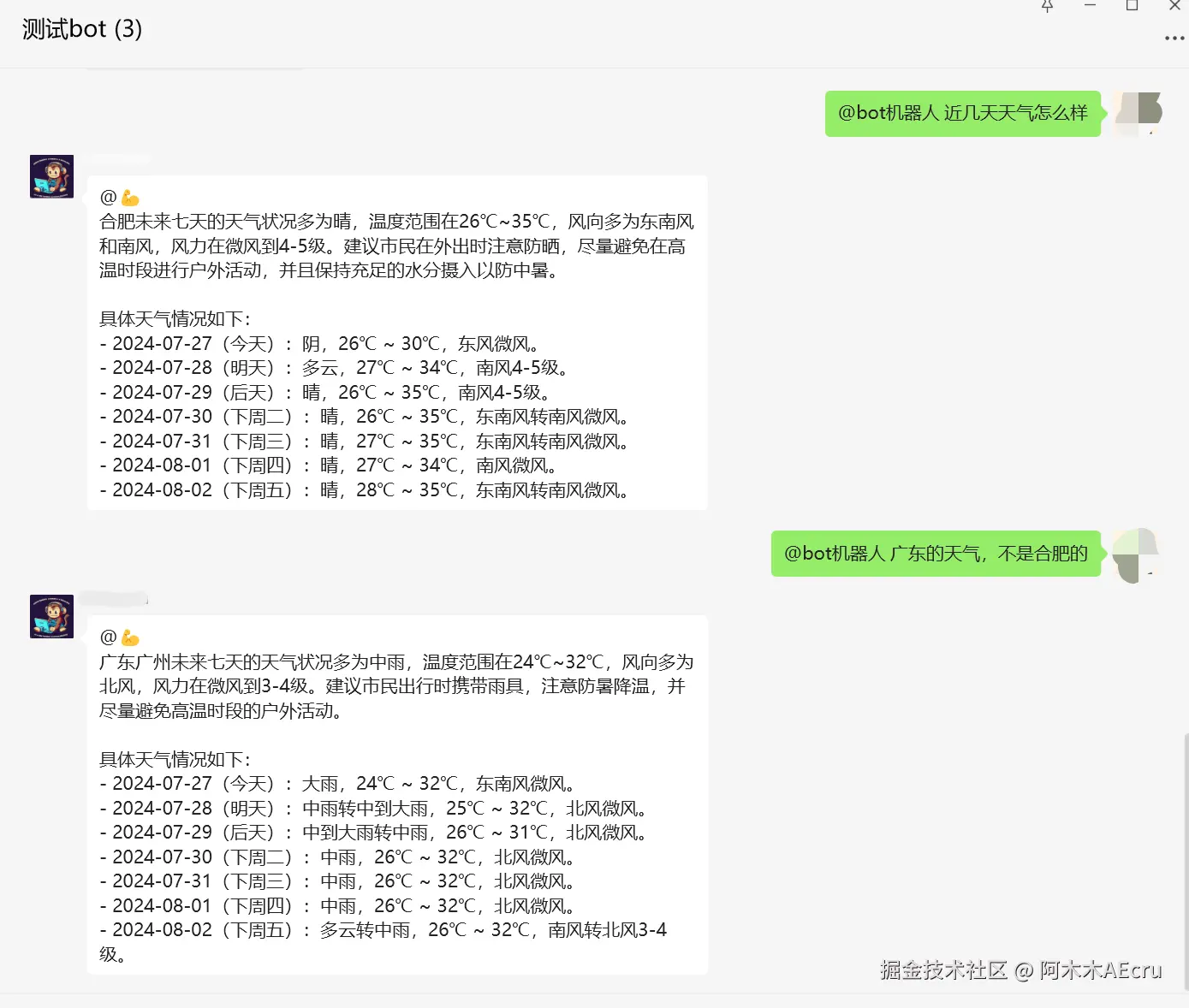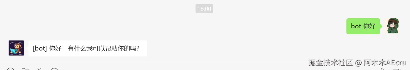 能够自动回复之后就部署完成啦!在使用的时候可能会觉得响应有些慢,这是因为正常我们使用大模型的时候都流式响应的,这个机器人只能够做到等待大模型响应完成后再将结果输出到聊天框,所以响应内容多的时候会感觉有点慢,这个是正常的。