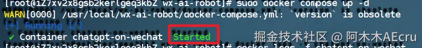 需要先执行查看日志指令 docker logs -f chatgpt-on-wechat