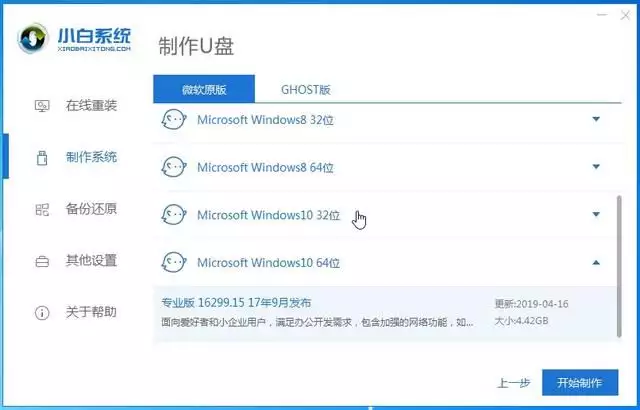 2、选择需要的系统进行制作。