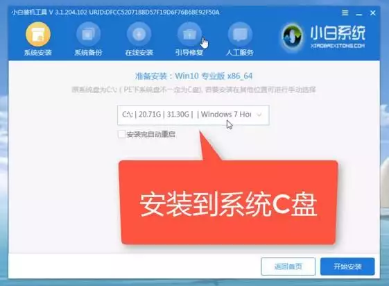 8、打开桌面的装机工具将系统安装在C盘,安装完成后重启电脑即可完成安装。