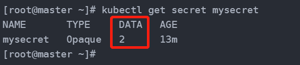 讯享网[root@master ~]# kubectl get secret mysecret NAME TYPE DATA AGE mysecret Opaque 2 13m [root@master ~]#