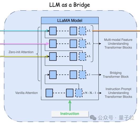 LLM的文本指令从底层,也即第一层输入。利用该技术,LLM被赋予了通过其他模态信息来引导LLM输出的能力。