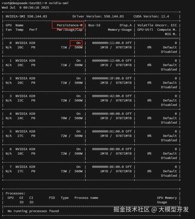 驱动安装完成,且开启持久模式之后,nvidia-smi显示如下: