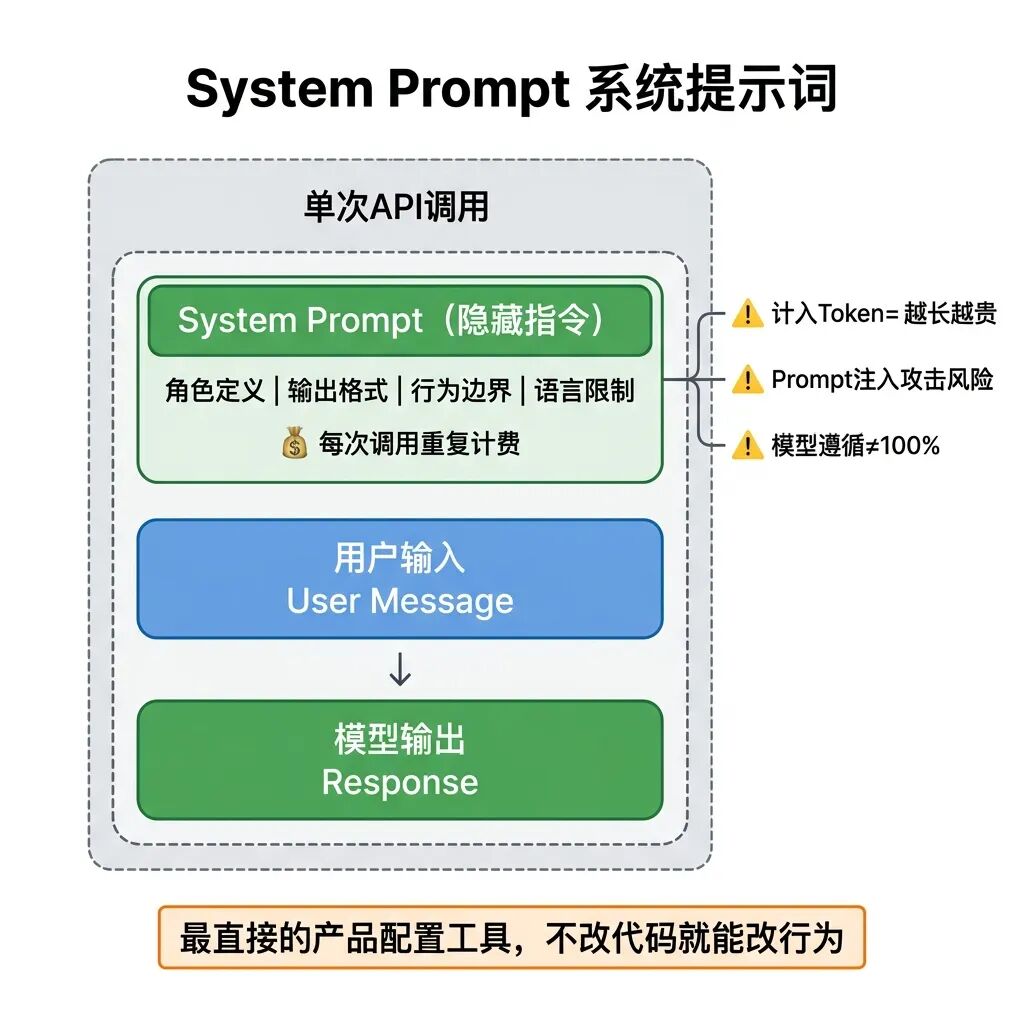 System Prompt计入输入Token,每次调用都会重复计费这部分Token,System Prompt越长,每次API成本越高。