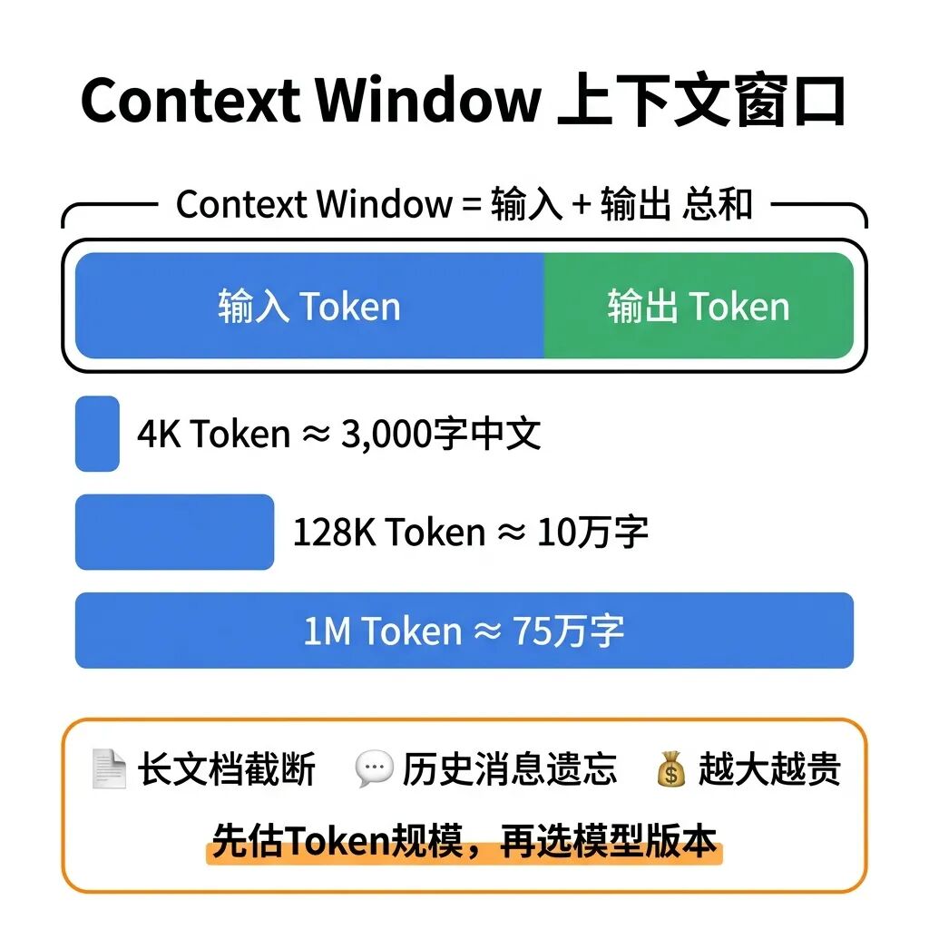 Context Window 是模型在单次推理中能同时处理的最大Token数量,包括输入和输出的总和。这个参数直接决定产品能做什么。