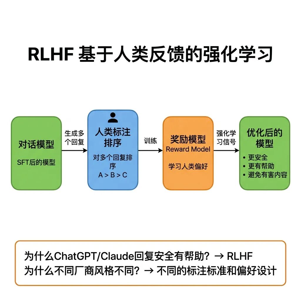 同样是开源模型,有的回复安全、有帮助,有的动不动就输出不该输出的内容。这个差异的核心来源就是RLHF。