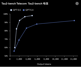 还有Tau2 Telecom,这是一个电信客服流程测试,GPT-5.5 在无需额外调优的情况下达到98.0%。这类任务更接近企业里的真实工作,需要在复杂、多步骤、有上下文依赖的流程中完成。