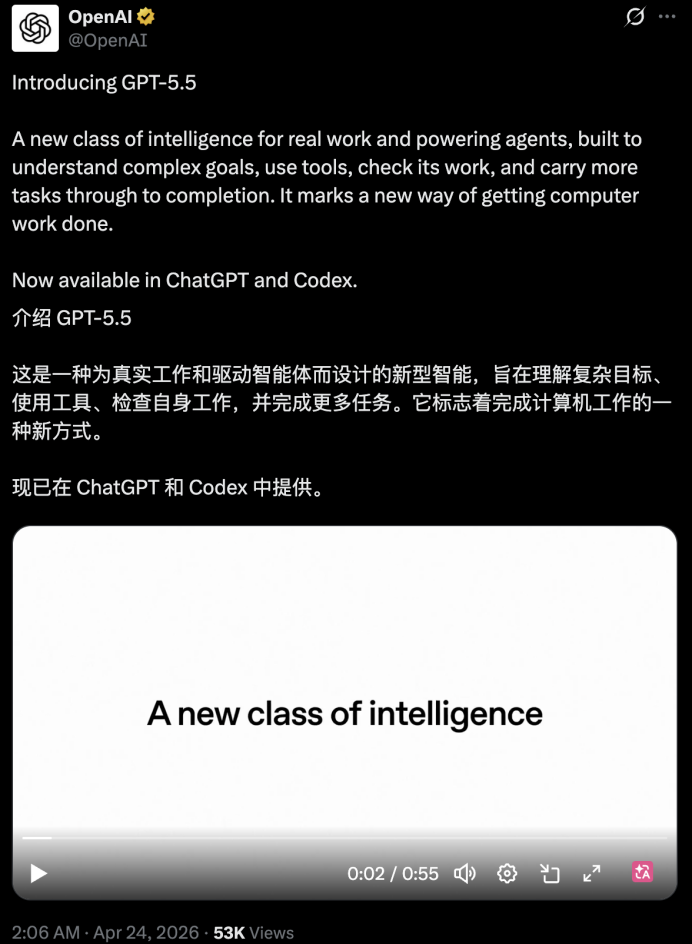 这一代模型更像一个可以协作的执行者,得分只是表面,更重要的是这些分数背后指向的一件事:GPT-5.5的定位,从“回答”转向了“执行”。