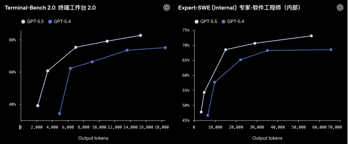 OpenAI给出的数据是,在实际服务中,GPT-5.5的速度与GPT-5.4基本持平,但在完成同样Codex任务时使用的token明显更少。这一点对API用户尤其重要,因为它直接决定了真实使用成本。