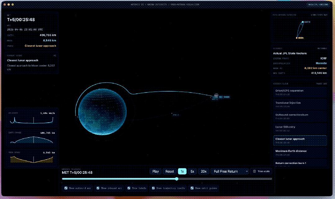 技术上要求用WebGL做3D渲染、用Vite搭项目,内容上要尽量接入ArtemisII任务的真实数据,把轨道、飞行路径、天体位置这些信息真实地表现出来。