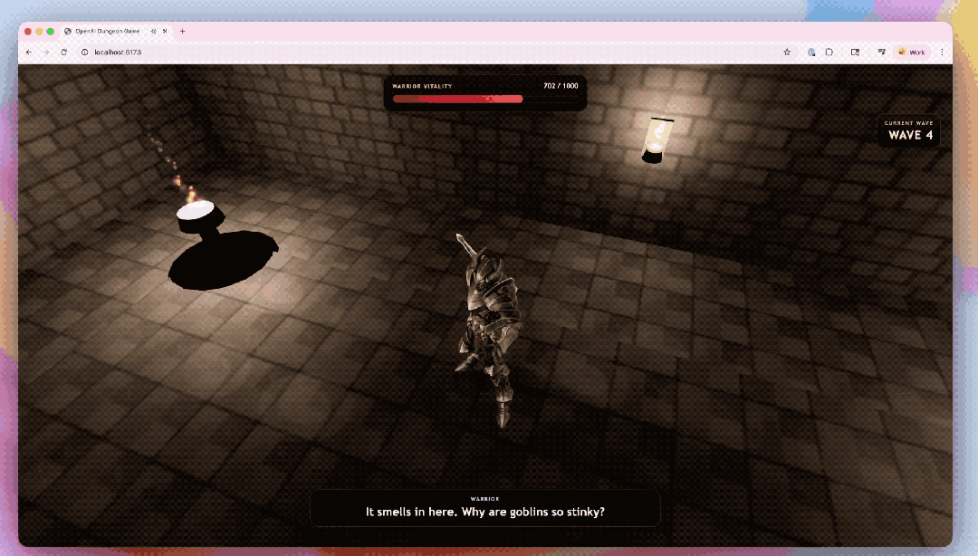 还有让GPT-5.5结合Codex生成的3D地牢竞技场原型。