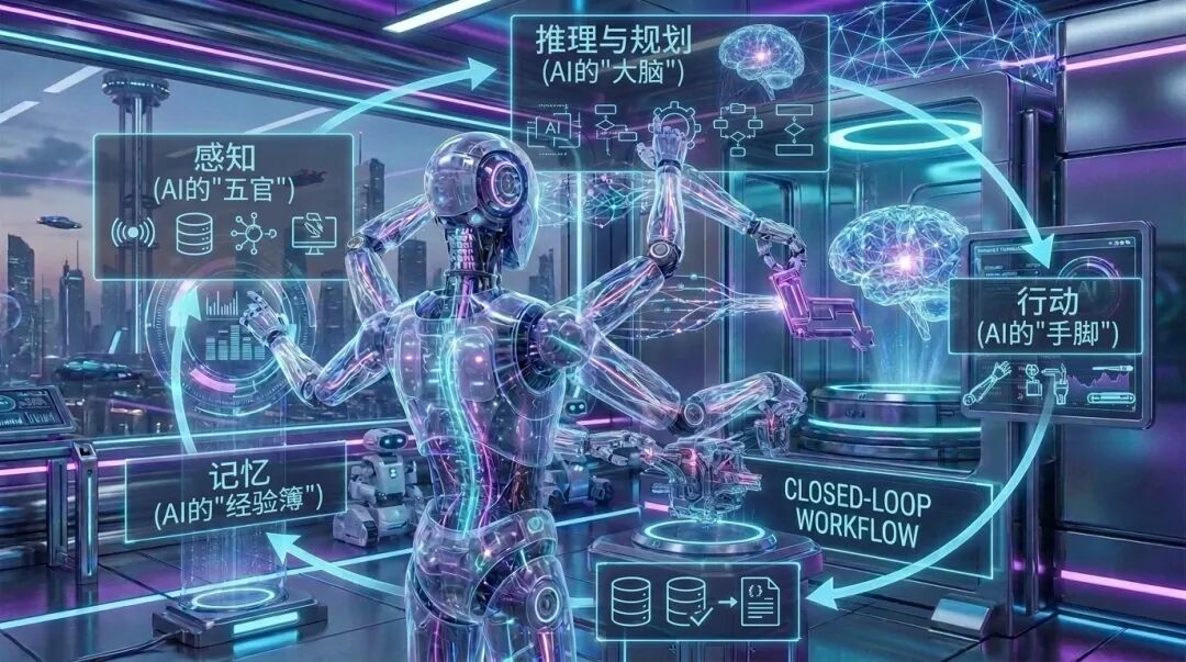 别再觉得AI智能体很遥远。它就是一个有感知、能思考、会行动、还长记性的“数字打工人”。
