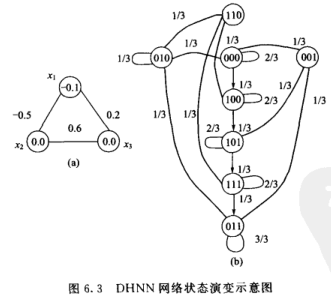 设各节点状态取值为1或者0,3节点的DHNN网络应有