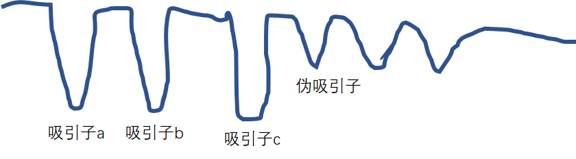 是吸引子,但是需要指出来的是我们设计时有时候并不能正好的设计那么多,例如我需要60个吸引子,但是我需要设计64个吸引子,因此会多出4个吸引子,该吸引子称为伪吸引子。下面画个图给大家理解一下什么意思,伪吸引子并不是我们想要的,但是它存在: