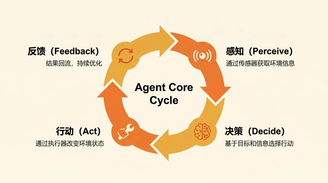 这四种状态循环往复:感知 → 决策 → 行动 → 反馈。