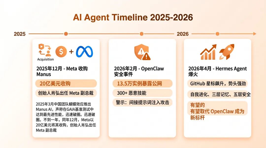 2025 年 3 月,中国团队蝴蝶效应推出 Manus AI,声称在 GAIA 基准测试中达到最先进性能,迅速破圈。不到一年,同年 12 月,Meta 以 20 亿美元将其收购,创始人肖弘出任 Meta 副总裁。